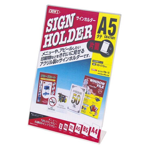 クルーズ サインホルダー 片面用 A5縦 CR47501|メニュー POP展示 用途に最適 透明 アクリル