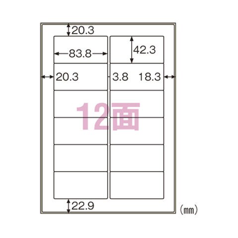 | 商品仕様 | ●規格:A4判12面●1片寸法:縦42.3×横83.8mm●紙種:ホワイトフィルム●総紙厚:0.23mm |