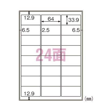 | 商品仕様 | ●過酷な条件下でもしっかり貼れる屋外用ラベル。●耐水・耐光・耐温度で超強力タイプ。●-20℃から+80℃の環境でも使用可能。●ガラスなどに貼れてきれいに剥がせます。●油面・コンクリート・結露面など貼る場所に合わせて選べます。●屋外はもちろん、工場や厨房、工事現場などの厳しい環境での使用に適しています。(-20℃~+80℃)。 ●規格:A4判24面●1片寸法:縦33.9×横64mm●紙種:ホワイトフィルム●総紙厚:0.23mm |
