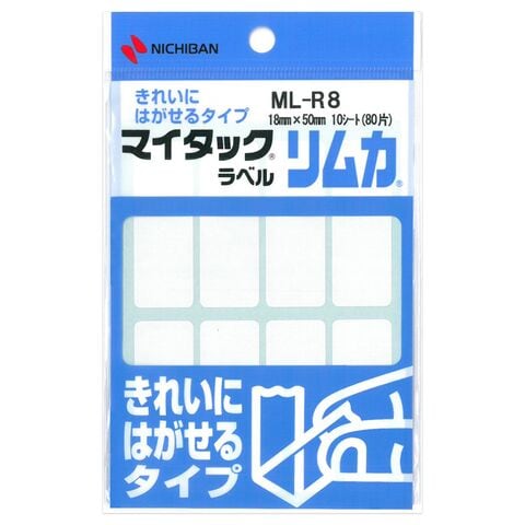 ニチバン マイタックラベル リムカ 一般無地 きれいにはがせるタイプ 18×50mm 80片入 ML-R8