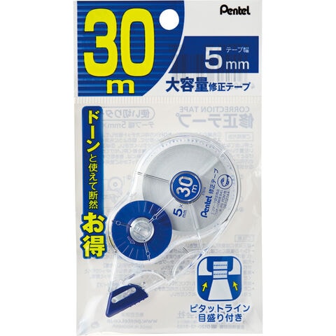 30m修正テープ<ピタットライン付> ぺんてる XZT515-W 使い切りタイプ 5mm幅 消し具