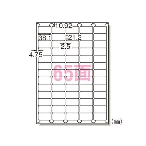 | 商品仕様 | ●写真やイラストを鮮やかに印刷。●ツヤツヤした光沢のある仕上がり。 ●規格:A4判65面●1片寸法:縦21.2×横38.1mm●紙種:光沢コート紙●総紙厚:0.18mm |