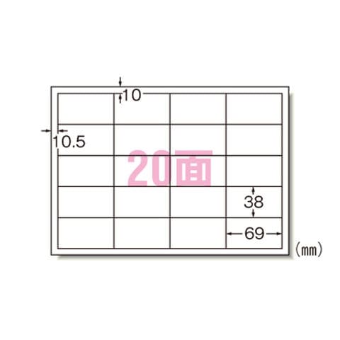 | 商品仕様 | ●曲がりや反りを抑え、給紙がスムーズ。●コピー機に最適なラベル。 ●規格:A4判20面R型●1片寸法:縦38×横69mm●紙種:上質紙●総紙厚:0.13mm |