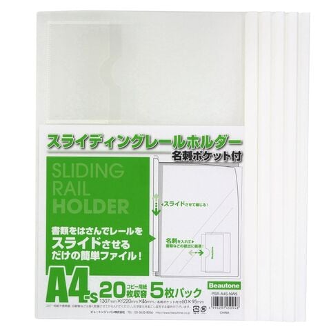 ビュートン スライディングレールホルダー 名刺ポケット付 A4タテ 20枚収容 ホワイト PSR-A4S-NW5 5冊パック