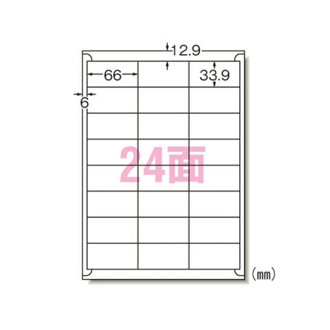 | 商品仕様 | ●用途に合わせてサイズが選べる、マット紙ラベルシリーズ。 ●規格:A4判24面●1片寸法:縦33.9×横66mm●紙種:上質紙,インクジェット専用塗工●総紙厚:0.15mm |