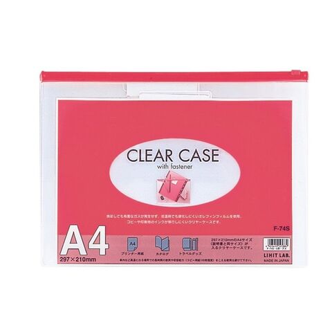 リヒトラブ LIHIT LAB. F-74S-アカ クリヤーケース|A4 横型 ファスナー 見出し付き F-74Sアカ