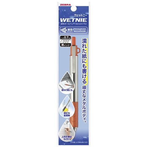 ゼブラ ウェットニー P-BA100-OR|加圧式 ボールペン オレンジ 0.7mm 黒インク 油性ボールペン 軸色/オレンジ