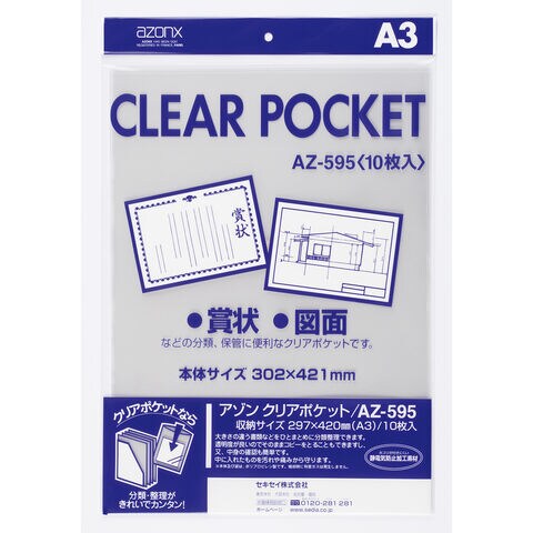 セキセイ クリアポケット A3 10枚 AZ-595-00|透明 収納 事務用品