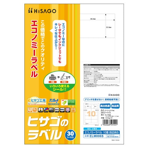 ヒサゴ エコノミーラベル A4 10面 四辺余白 ELM006S 30シート入