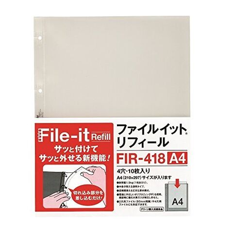 テージー ファイルイットリフィール A4 FIR-418|クリア ポケット 4穴のレビュー