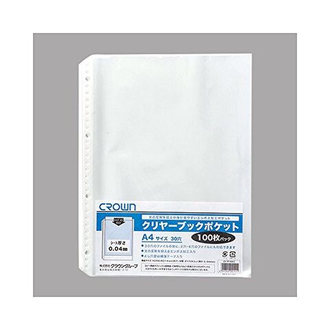 クラウン クリヤーブックポケット A4 100枚P CR-TP104-C|薄手 エンボス 書類 収納
