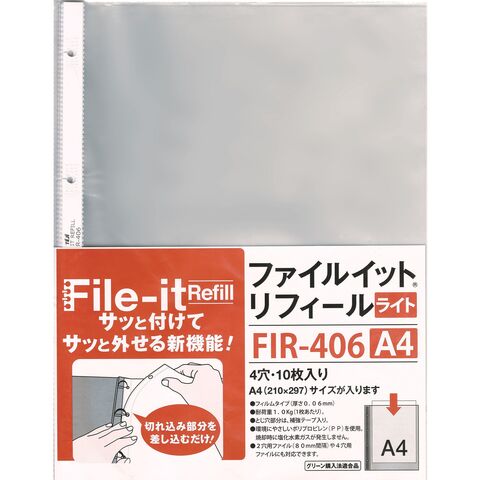 テージー ファイルイット リフィールライト FIR-406|リングファイル ポケット 10枚入り