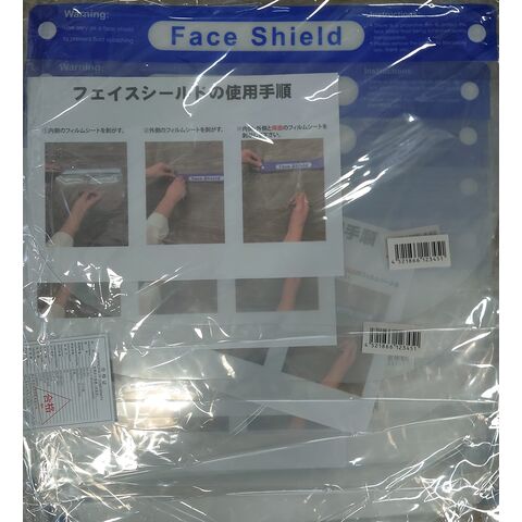 | 商品仕様 | ●仕様:フリーサイズ●シールド外寸:約縦220×横320×厚0.25mm●重量:約30g●材質:弾性バンド=ポリエステル海綿/ポリエステルスポンジ,フェイスシールド(曇り止め)=PET |