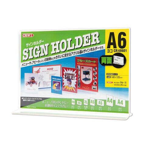 クルーズ サインホルダー両面用A6横 CR48601|メニュースタンド ディスプレイ 卓上
