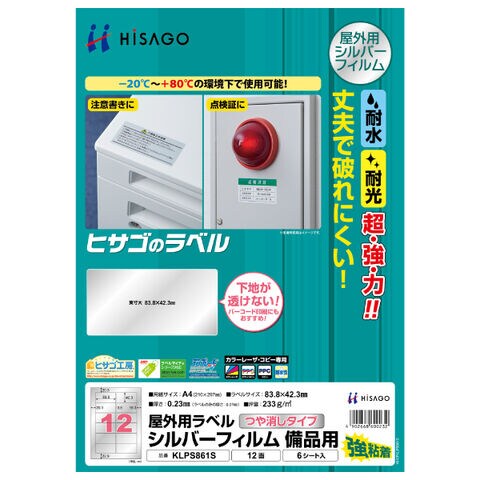 ヒサゴ シルバーフィルム備品用 A4 12面 KLPS861S