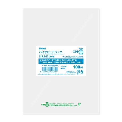 | 商品仕様 | ●規格:B5用●寸法:縦270×横195mm●厚:0.03mm●材質:バイオマス成分入OPP |