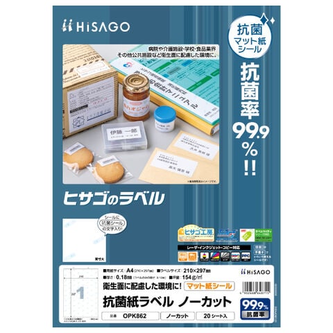 ヒサゴ 抗菌紙ラベル A4 ノーカット OPK862|上質紙 抗菌加工 99.9%抗菌