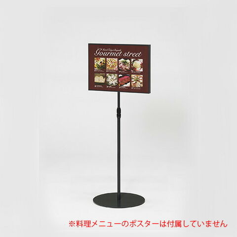 | 商品仕様 | ●板面が落下を防ぐ枠カバー付き。●片面ずつ異なる表示を入れることもできます。●ポール部分を上下させて高さ調整も可能です。 ●規格:A3ヨコ●外寸:幅423×奥330×高985~1425mm●ベース径:330mm●板面サイズ:縦302×横423mm●表示画面:縦288×横411mm●重量:4.2kg●材質:枠/ベース/ポール=スチール板粉体塗装,連結樹脂=ABS樹脂,板面=PET/厚紙,枠カバー=スチール●マグネット,六角レンチ付 |