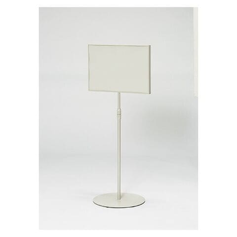 | 商品仕様 | ●板面が落下を防ぐ枠カバー付き。●片面ずつ異なる表示を入れることもできます。●ポール部分を上下させて高さ調整も可能です。 ●規格:A3ヨコ●外寸:幅423×奥330×高985~1425mm●ベース径:330mm●板面サイズ:縦302×横423mm●表示画面:縦288×横411mm●重量:4.2kg●材質:枠/ベース/ポール=スチール板粉体塗装,連結樹脂=ABS樹脂,板面=PET/厚紙,枠カバー=スチール●マグネット,六角レンチ付 |