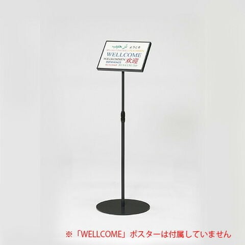 | 商品仕様 | ●板面が落下を防ぐ枠カバー付き。●見る人の目線や光の反射などに応じて、板面の角度を変えられます。●ポール部分を上下させて高さ調整も可能です。 ●規格:A4ヨコ●外寸:幅330×奥330×高860~1300mm●ベース径:330mm●板面サイズ:縦215×横300mm●表示画面:縦201×横288mm●重量:3.6kg●材質:枠/ベース/ポール=スチール板粉体塗装,連結樹脂=ABS樹脂,板面=PET/厚紙,枠カバー=スチール●六角レンチ付 |