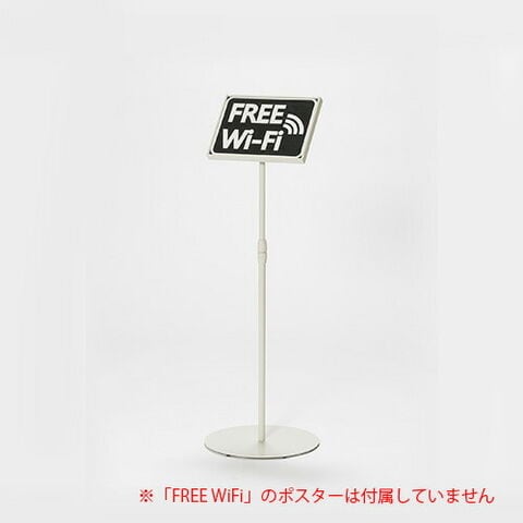 ●規格:A4ヨコ●外寸:幅330×奥330×高860~1300mm●ベース径:330mm●板面サイズ:縦215×横300mm●表示画面:縦201×横288mm●重量:3.6kg●材質:枠/ベース/ポール=スチール板粉体塗装,連結樹脂=ABS樹脂,板面=PET/厚紙,枠カバー=スチール●六角レンチ付