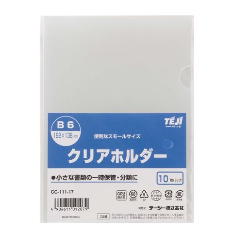 テージー クリアホルダー B6 CC-111|書類 保管 分類 10枚入 CC-111-17 クリア