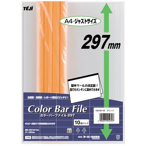 テージー カラーバーファイル297 A4 オレンジ CBY297-05|10冊セット 透明表紙 企画書用 CBY-297-05 オレンジ