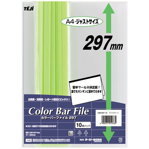 テージー カラーバーファイル297 A4 ライトグリーン|ファイル 書類 10冊セット CBY297-15 CBY-297-15 ライトグリーン