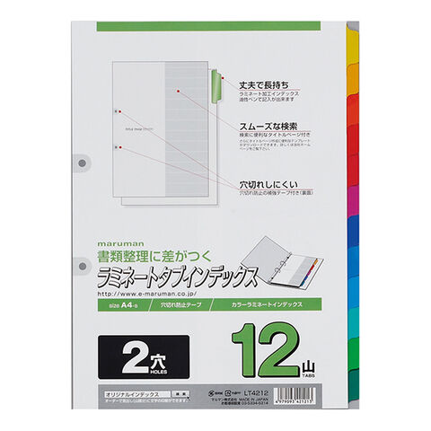 マルマン ラミネートタブインデックス A4 2穴 12山 LT4212|書類整理 耐久性 色分け