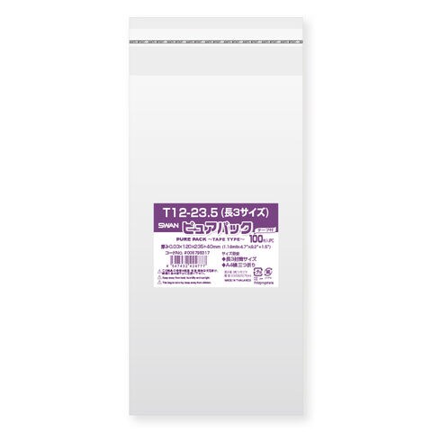 シモジマ Nピュアパック T12-23.5(長3サイズ)|OPP袋 透明 テープ付き 100枚 6798317