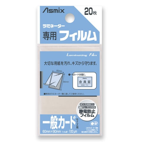 ●規格:一般カード用●外寸:縦90×横60mm●フィルム厚:100μm(0.1mm)