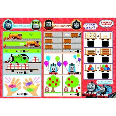 大好きなトーマスたちだから、興味を持って取り組むことができます。トーマスなどのイラストで「あわせていくつ」「のこりはいくつ」を表現しているため、計算式を学習する前に、たし算・ひき算の概念を身に付けられます。