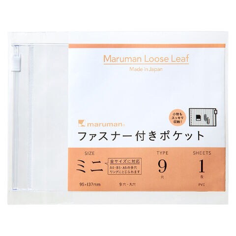 マルマン ファスナーポケットミニ L487|ルーズリーフ 9穴 小物収納