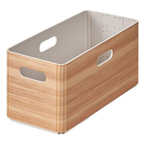 | 商品仕様 | 暮らしに馴染む木目調収納ボックス使いやすいナチュラルとシックなブラウンの2色展開 軽くて丈夫な発泡PP素材で水に強い。組み立て簡単でスタッキングも可能。使わないときはフラットに収納できます。 【材質】PP 【本体重量】228g 【本体サイズ(縦x横x高)】265mm x 120mm x 128mm 【原産国】中国 |