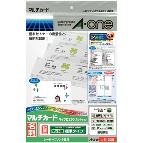 エーワン マルチカード レーザープリンタ専用紙 名刺 100枚 51335