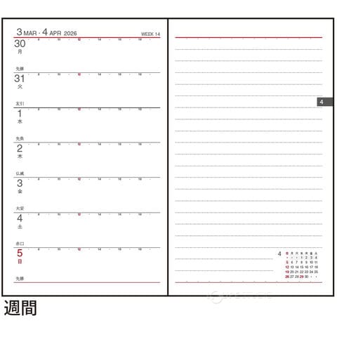 ダイゴー ダイアリー 2026年 手帳 4月始まり 3月始まり 26-27 アポイント 1W+横罫 ウィークリー appoint スケジュール帳 ビジネス手帳 おすすめ プレゼント 文房具 メモ帳 スケジュール ビジネス 大人 就職祝い 新成人スペック