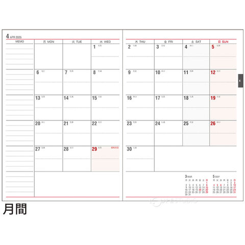 | 主レイアウト | 1週間+横罫 |