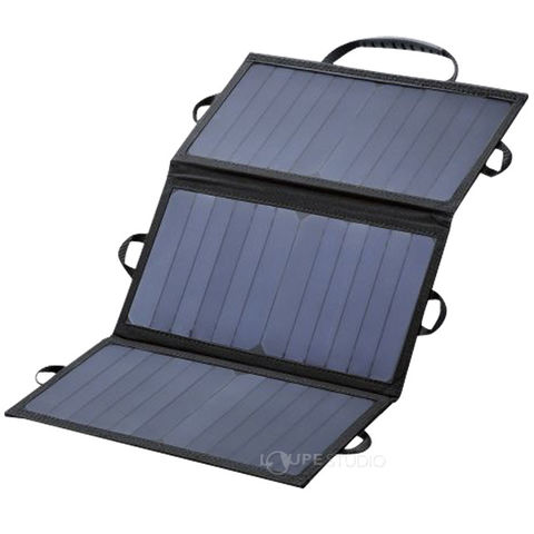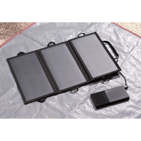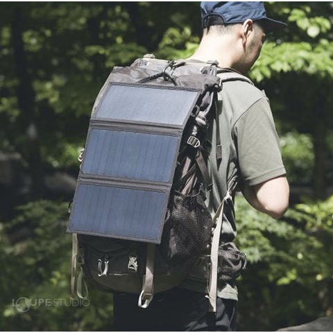 取り込んだ太陽光を高効率で電力に変換できるパネルを採用しています。折り畳むことができ、どこかに設置する際に便利な吊り穴と取っ手も付いています。