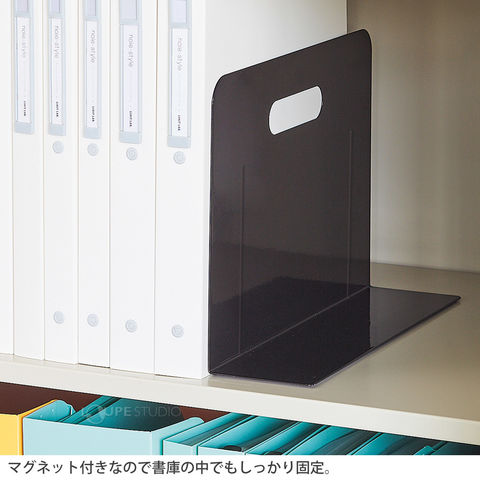 ブックエンド 倒れない ワイドタイプ マグネット付 ブックスエンド ブックスタンド 卓上 デスク 収納 キッチン 本立て スチール 棚 アイデアグッズスペック