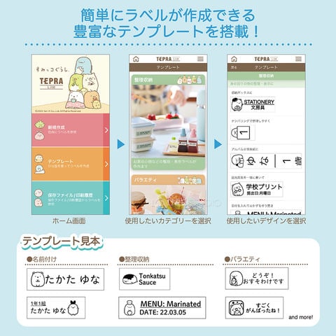 注意※「テプラ」Lite LR30SGを使用するには、iOS / Android用アプリ「すみっコぐらし TEPRA Lite」(無料)が必要です。