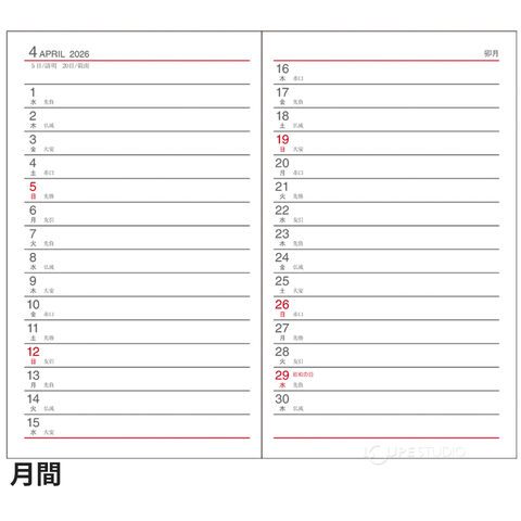 罫線幅や文字の配置など細部まで使いやすさにこだわった仕事を機能面でサポートする手帳です。