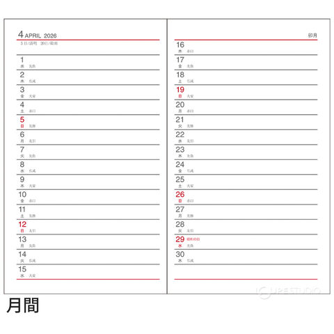 | 主レイアウト | 見開き1週間 |