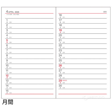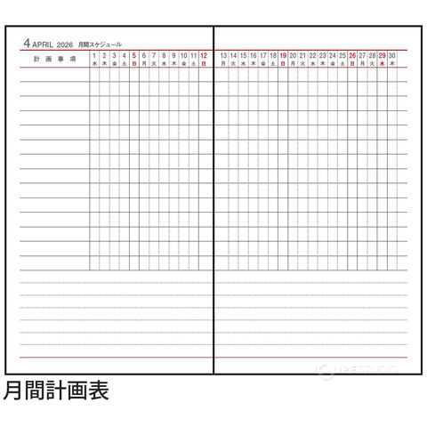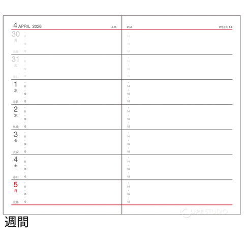 | 主レイアウト | 見開き1週間 |
