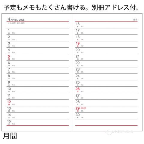 罫線幅や文字の配置など細部まで使いやすさにこだわった仕事を機能面でサポートする手帳です。