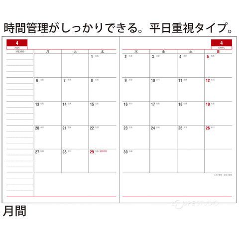 罫線幅や文字の配置など細部まで使いやすさにこだわった仕事を機能面でサポートする手帳です。