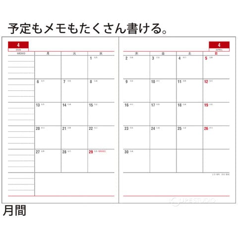 罫線幅や文字の配置など細部まで使いやすさにこだわった仕事を機能面でサポートする手帳です。