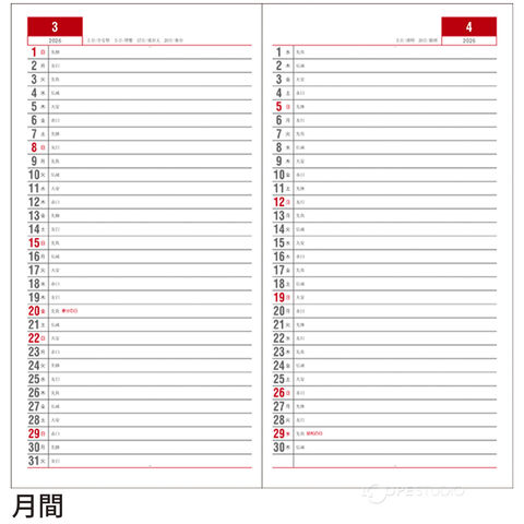 ・Appointシリーズは、仕事をする人のことを考えて作ったビジネスダイアリーです。使いやすさを追求し、罫線幅の種類、書体や文字の配置など細部にわたりこだわって制作しています。ビジネスシーンで使いやすいベーシックなデザインでお求めやすい価格も魅力です。・オリジナル手帳用紙へのこだわり:ダイゴーのオリジナル手帳用紙は、安定した強度と滑らかな筆記特性・万年筆やボールペンのにじみが少ないといった特徴があります。毎年、製紙メーカーと改良を重ね、手帳用紙を抄造(紙の原料をすいて紙を製造すること)しています。毎日書き込むものだからこそ、使いやすさにこだわって厳しい項目をクリアした紙だけを使用しています。・180度フラットに開く『糸かがり製本』:書きやすい手帳の条件は、180度フラットに開くことです。それを実現するためにダイゴーでは糸でしっかりと綴じられた『糸かがり製本』が最も相応しい製本方法だと判断し、多くの製品で採用しています。だから、ダイゴーの手帳はきれいに開きます。