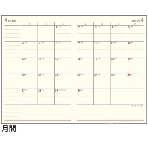1ヶ月の予定を曜日ごとに管理しやすい、カレンダーと同じ感覚で使える月間レイアウトです。