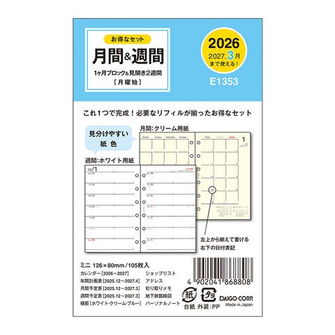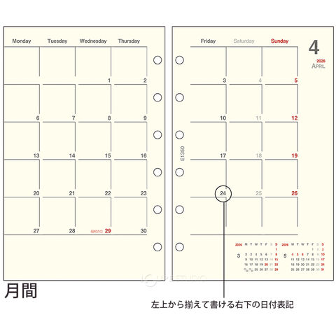 | 主レイアウト | 1ヶ月ブロック&見開き2週間 |