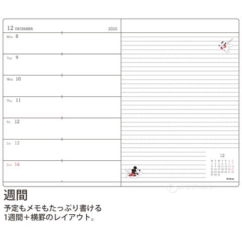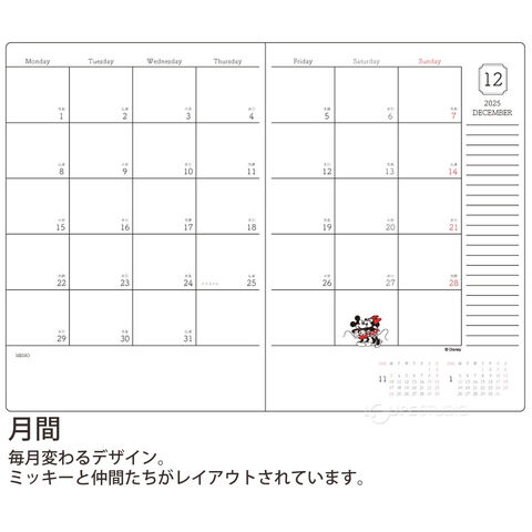 プライベートはもちろん、仕事でも使えるディズニーデザインのシンプルなダイアリー。